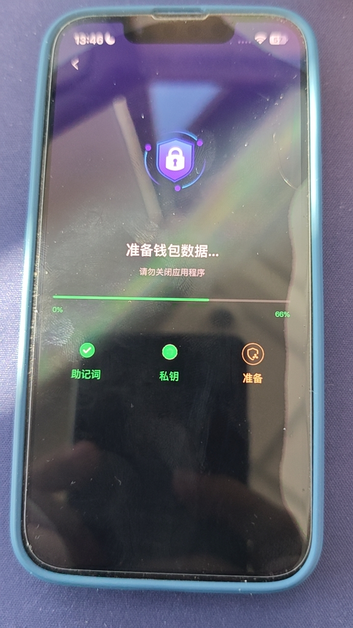 - 进度条完成33%,66%,100%的时候,下方提示的“助记词”“私钥”“完成”的状态样式跟UI不一样;而且文案分别要改成“创建助记词”“生成私钥”“钱包准备中”